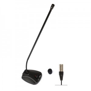Настольный однонаправленный конденсаторный микрофон с подставкой. 80 Гц — 18 кГц. Выключатель (on/off и PTT/PT). Фильтр НЧ. Выход: лин. mini XLR (m). Фантомное питание 11-52 В. Кабель 5 м с разъемами XLR (f) - XLR (m). 100-600 Ом