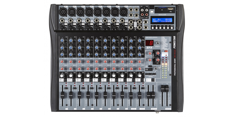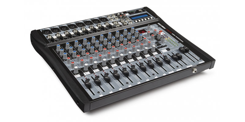 Профессиональный 12-канальный стерео микшер с USB / SD / MP3-плеер и цифровым процессором эффектов.