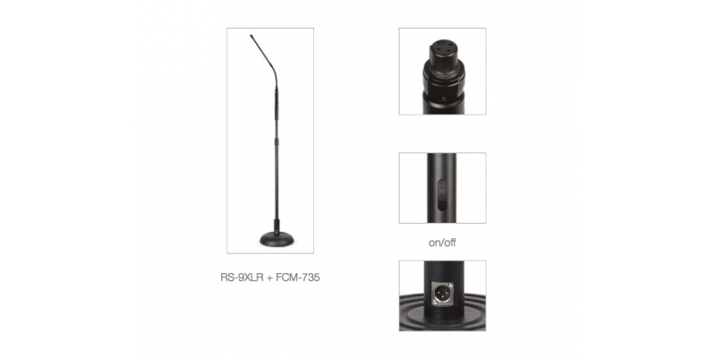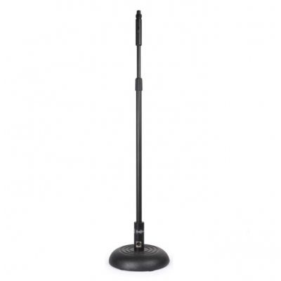 Микрофонная стойка с круглым чугунным основанием, разъемом XLR и переключателем.